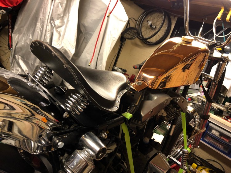 H-D Shovelhead Custom Parts Points Cover milled Zirconia Custom designed seat pan with coil springs and tractor style seat. Hinged at the front with phosphor-bronze bushes etc. The latest has ‘Hektor’ cut into the base, rather than Hector, and is powder coated stainless steel.